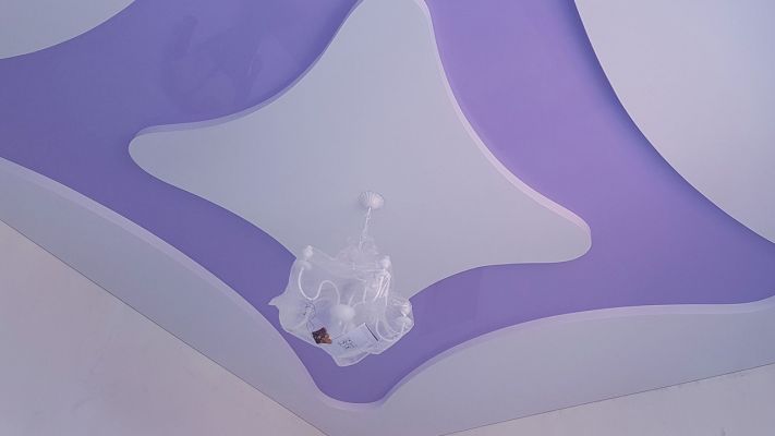 Jeho podstata je uvedena v názvu. To znamená, že struktura se nesestává z jednoho plátna, ale několika, instalovaných na různých úrovních. Navíc není nutné, aby každá úroveň pokrývala celou plochu stropu. Běžnou možností je například to, že první úroveň (blíže ke skutečnému stropu) je umístěna ve středu ve formě kruhu, oválu nebo jiné postavy a po obvodu, vyčnívajícím nad ní, je vytvořena druhá úroveň. Úrovně jsou navzájem ukotveny.